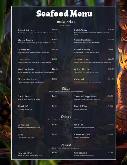 Organize items logically with clear headings and descriptions. Use colors that complement your restaurant's theme. Highlight popular dishes or specials to draw attention.