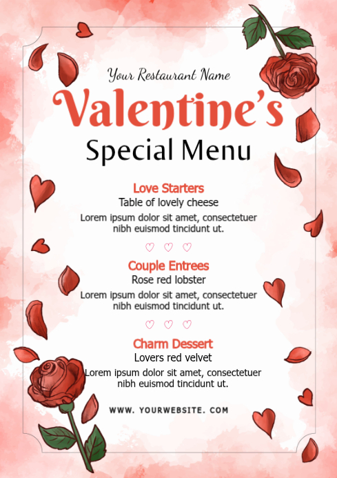 Restaurant menu design is the process of creating visually appealing and informative menus that showcase a restaurant's offerings. A well-designed menu can enhance the dining experience, influence customer choices, and boost sales. Using PosterMyWall, you can easily create professional-looking restaurant menus with customizable templates, even if you have no design experience.